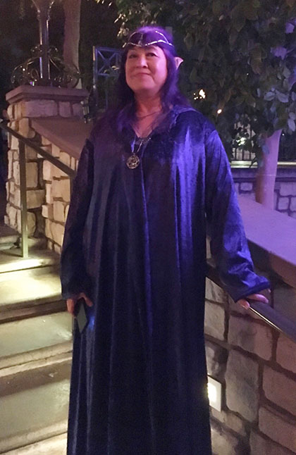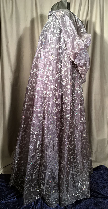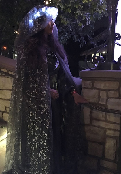 Different styles of fabrics, from intricate to difficult, were hand cut and sewn to give the illusion of Fancy Dress Elves, complete with custom battery pouches, which enclosed the battery packs for the crown lighting. Each cape and dress averaged 3 yards of fabric, one of which is fully lined. The Crowns were made to be easily adjusted for the perfect fit.
